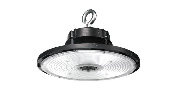 DESIGN. Q-BASE LED UFO HIGH BAY has a built-in motion sensor base, allowing you to install the microwave motion or PIR sensor. Die-cast aluminum housing with excellent heat dissipation along with an anti-glare PC lens provide many years of use. It can operate in temperatures ranging from -40 to 140°F. It runs on 120-277V or 277-480V circuits with a 0-10V dimmable driver.